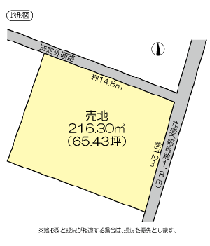 ※坪22.9万円 ※816番:田 51 u 817番:宅地165.30u 2筆合計 216.30u(65.43坪) ※農地法第5条届出要(手続き及び転用決済金は買主負担) ※古家あり:軽量鉄骨造2階建 昭和52年10月12日新築、 1階38.00u・2階28.00u ※確定測量渡し ※北側法定外道路あり ※赤星小学校区、はとり中学校区 ※図面と現況が相違する場合は、現況を優先します |