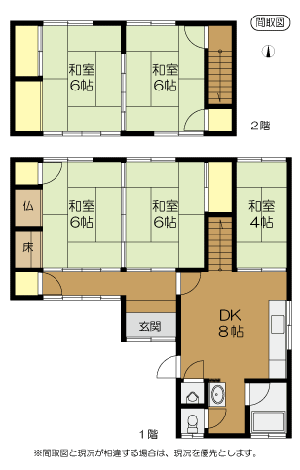 ■名古屋市中川区下之一色町字北ノ切 ◇googleMAPで場所を確認 ■交通:市バス「一色大橋」停 徒歩5分 ■敷地面積:公簿125.32u(37.90坪) ■建物面積:1階60.42u・2階26.49u・合計86.91u(26.29坪) ■都市計画:市街化区域 ■用途地域:第一種住居地域 ■建ぺい率:60% ■容積率:200% ■構造:木造瓦葺2階建 ■間取:5DK(DK(8)・和室(6.6.6.6.4)) ■築年月:昭和56年8月 ■接道状況:接道無 ■現況:空家 ■引渡:相談 ■設備:上水道・下水道・都市ガス ■駐車場:無 ■取引態様:仲介
