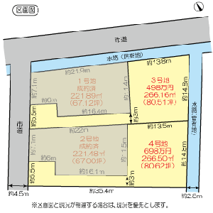 | ■あま市七宝町川部屋敷代 ◇googleMAPで場所を確認 ■名鉄バス「安松」停 徒歩7分、JR関西本線「蟹江」駅 徒歩44分(3.5km) ■敷地面積:1号地:221.89u(67.12坪)、2号地:221.48u(67.00坪)、3号地:266.16u(80.51坪)、4号地:266.50u(80.62坪) ■地目:田 ■都市計画:市街化区域 ■用途地域:第二種中高層住居専用地域 ■建ぺい率:60% ■容積率:200% ■道路:西側幅員約4.5mの公道に1号地・約7.1m、2号地・約7.1m、3号地・約5.5m、4号地・約5.5m接道 ■設備:公営水道、都市ガス、浄化槽 ■現況:更地 ■引渡:相談(分筆渡し) ■取引態様:仲介