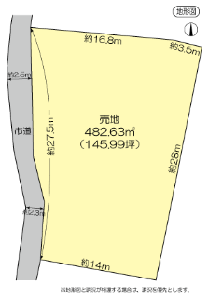 ※愛知県開発審査会第17号(旧既存宅地)要件あり ※再建築可 ※坪15万円 ※279番 宅地 426.44u 274番3 宅地 56.19u ※解体更地渡し ※図面と現況が相違する場合は現況優先とします ◇学校区:正則小学校・美和中学校 |